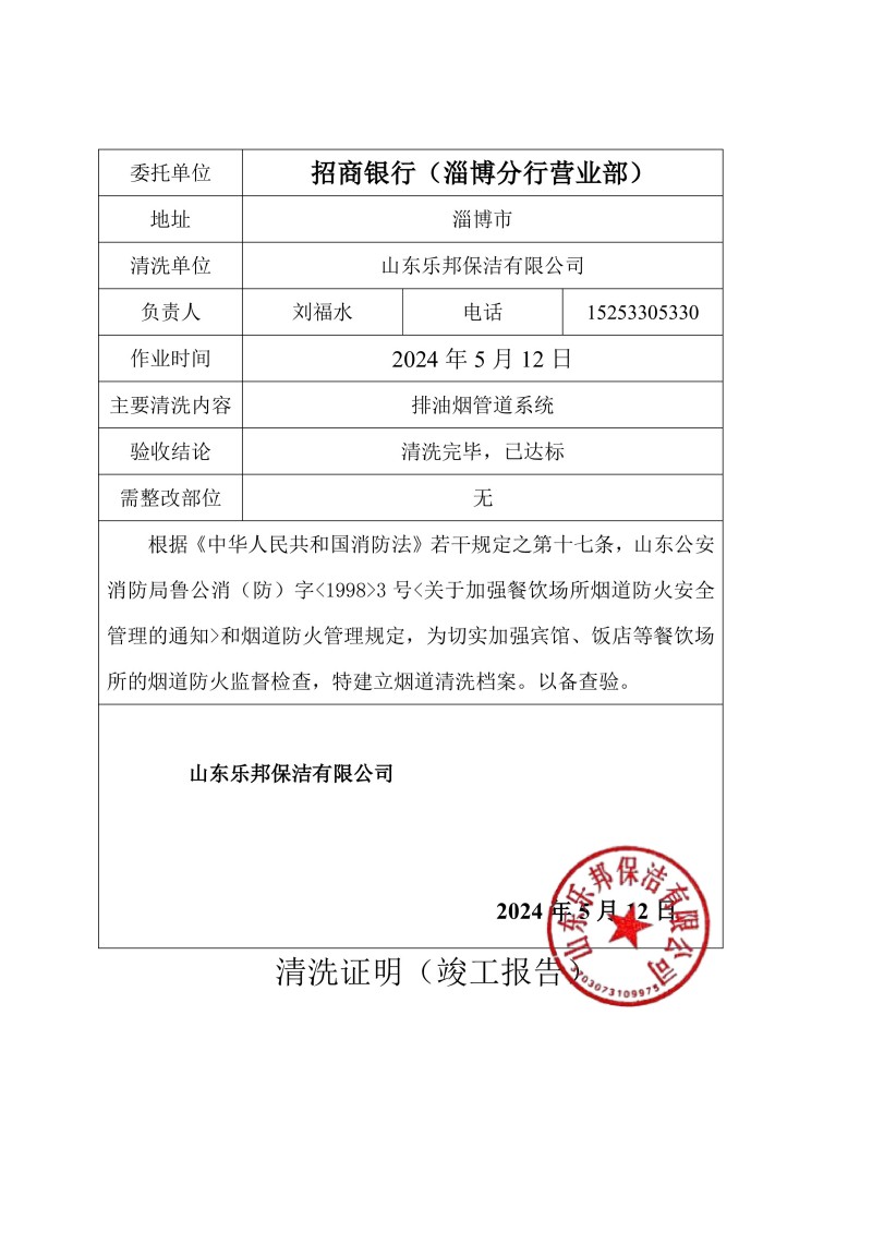 招商銀行(淄博分行營業部)清洗報告24.5.12