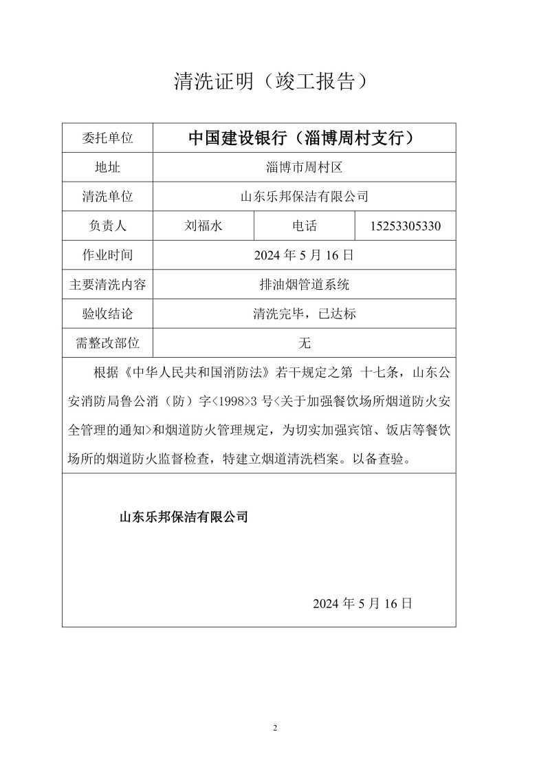 中國建設銀行(淄博周村支行)清洗報告24.5.15