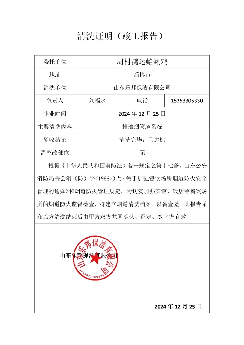 周村鴻運蛤蜊雞清洗報告24.12.25