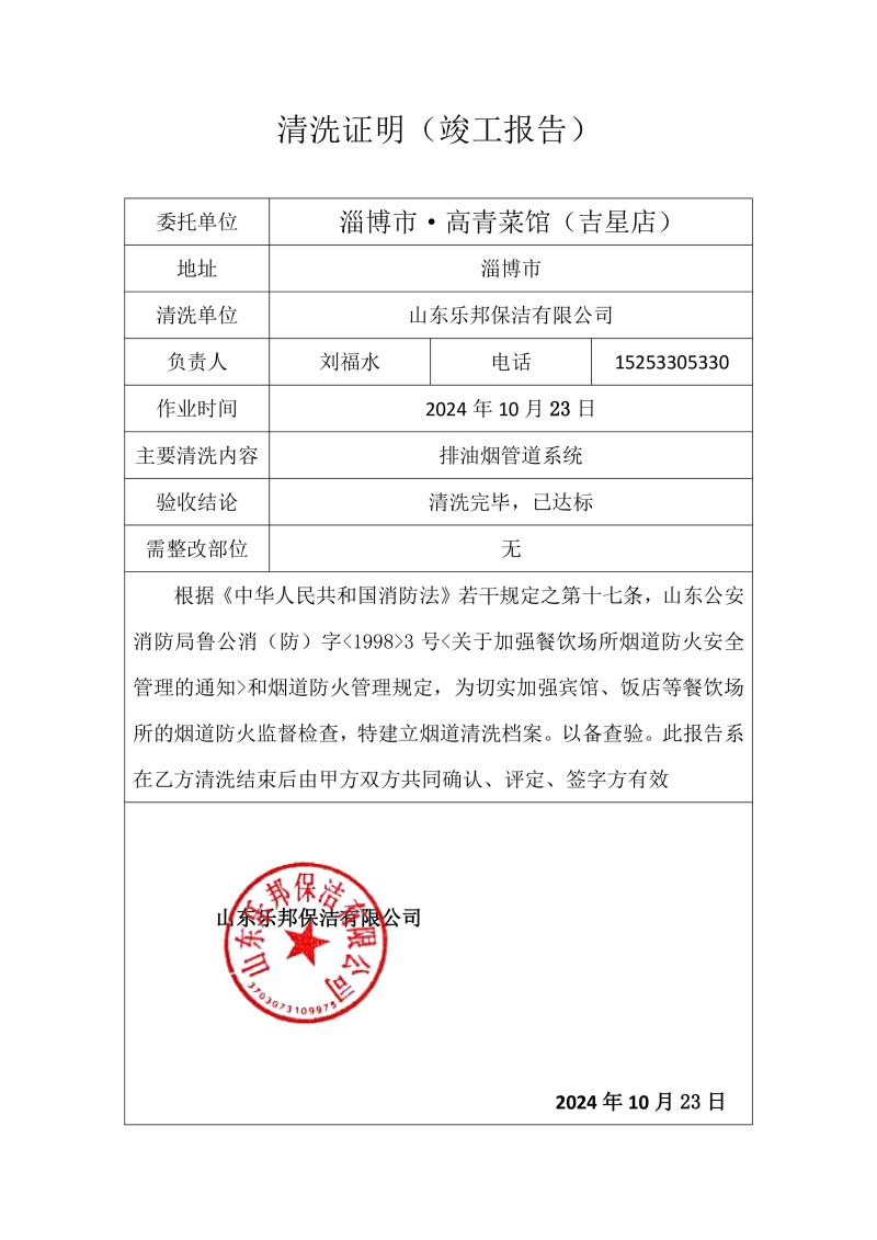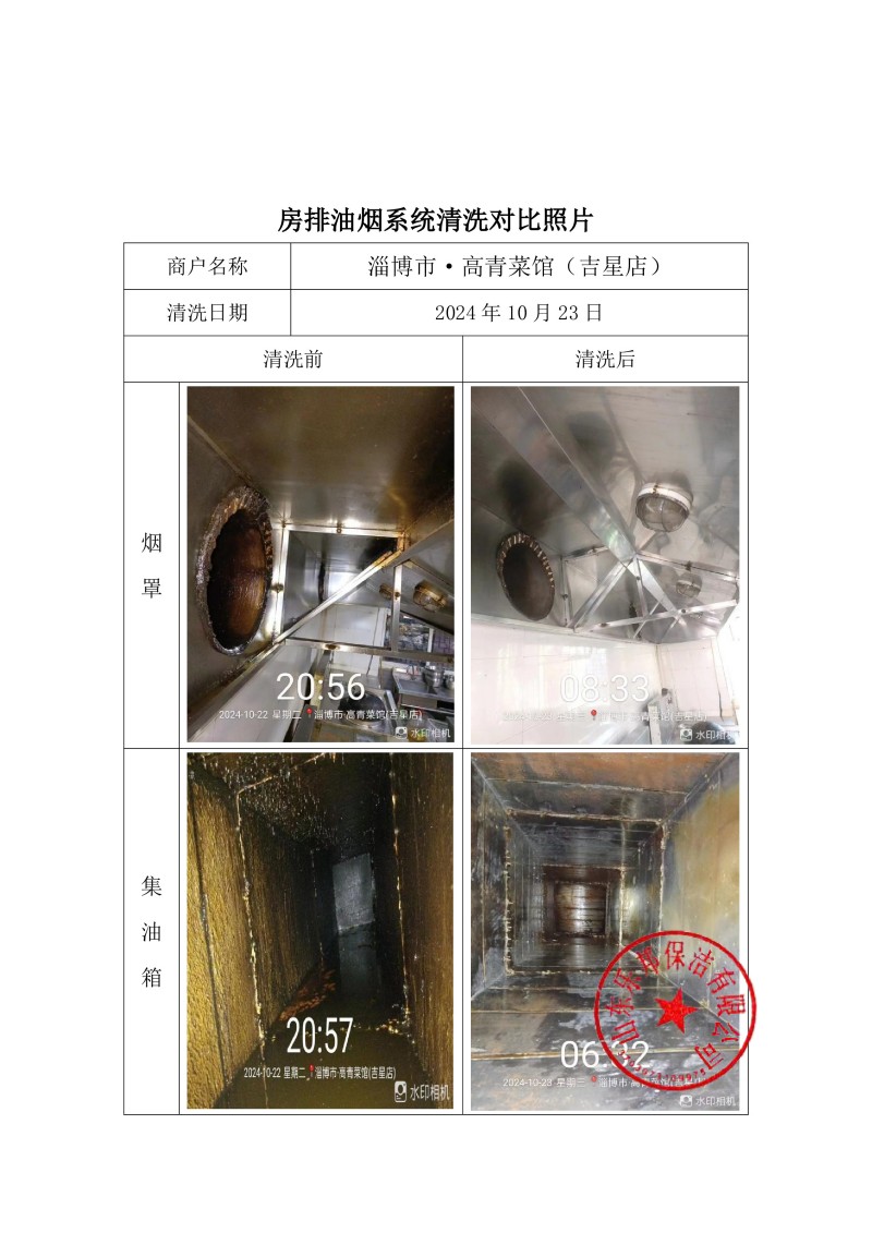 淄博市·高青菜館(吉星店)清洗報告24.10.23