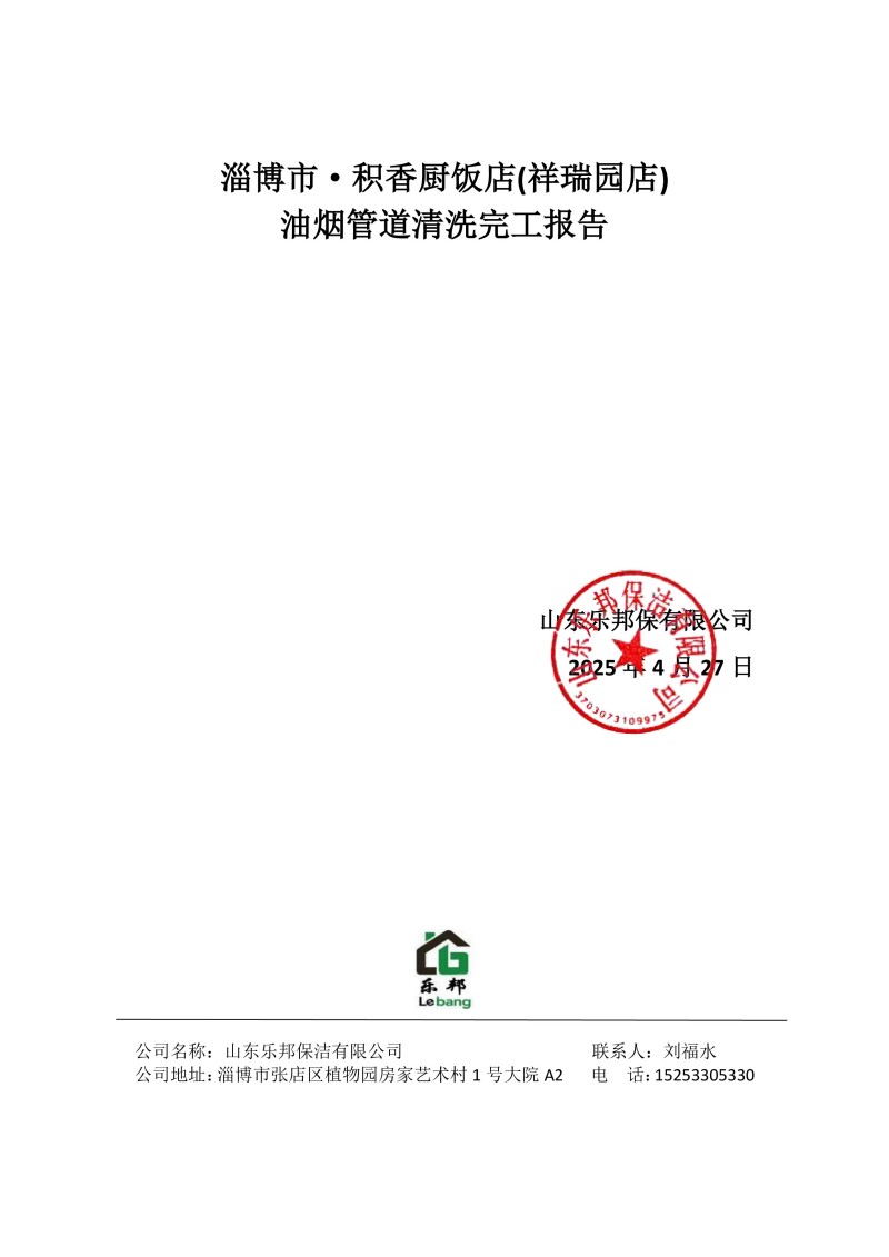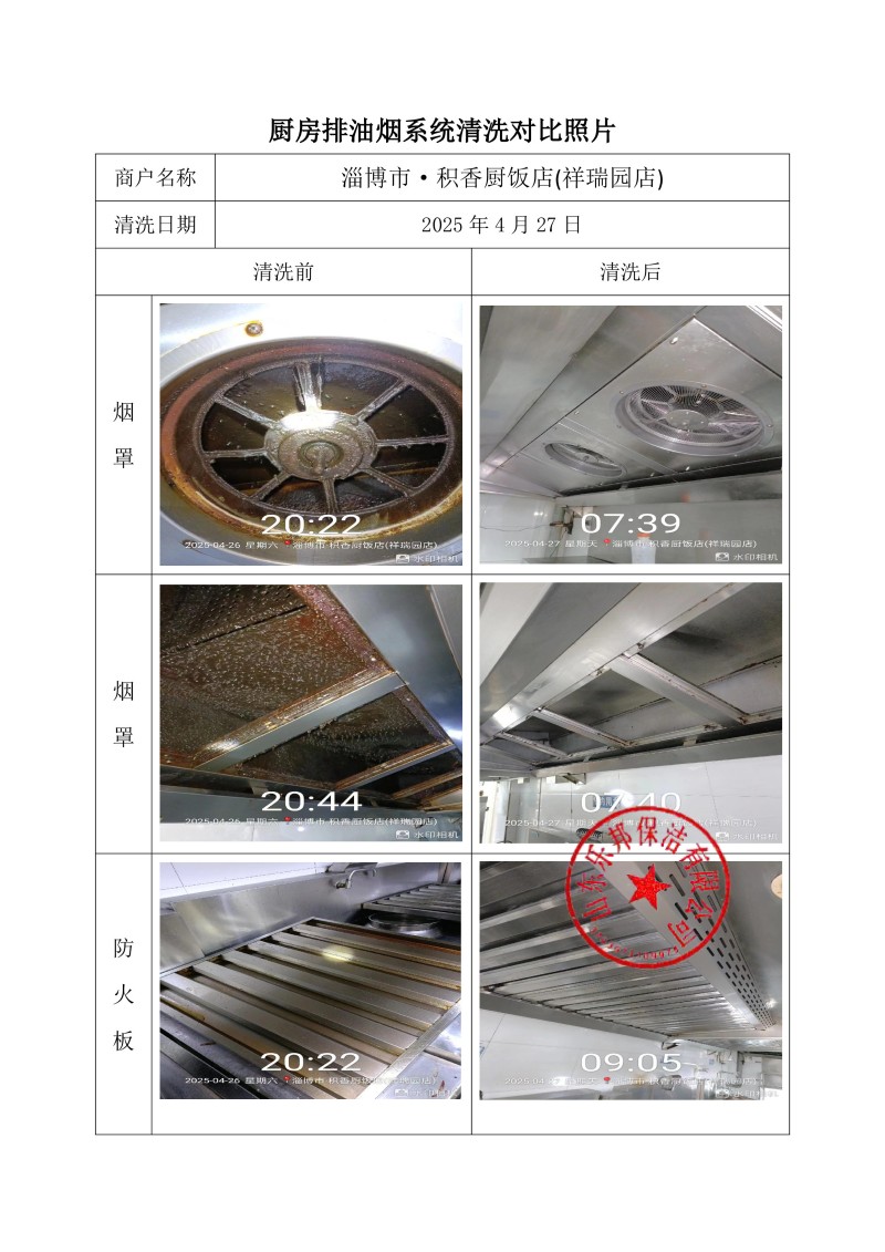 淄博市·積香廚飯店(祥瑞園店)清洗報告25.4.27