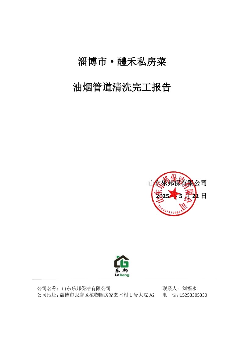淄博市·醴禾私房菜清洗報告25.5.22