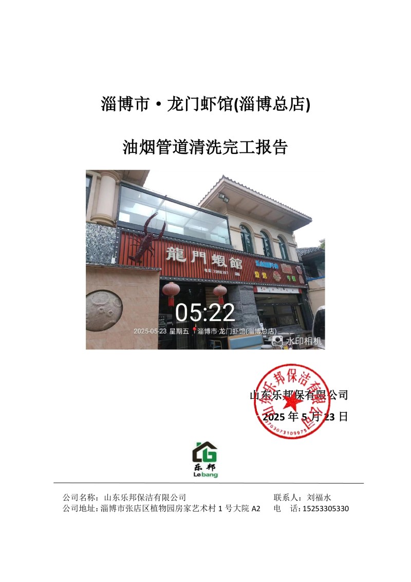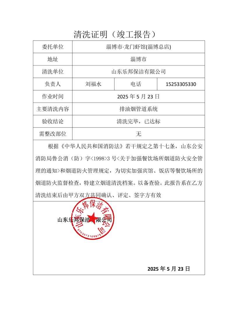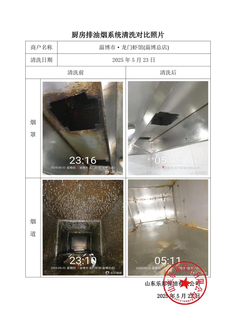 淄博市·龍門(mén)蝦館(淄博總店)清洗報(bào)告25.5.23