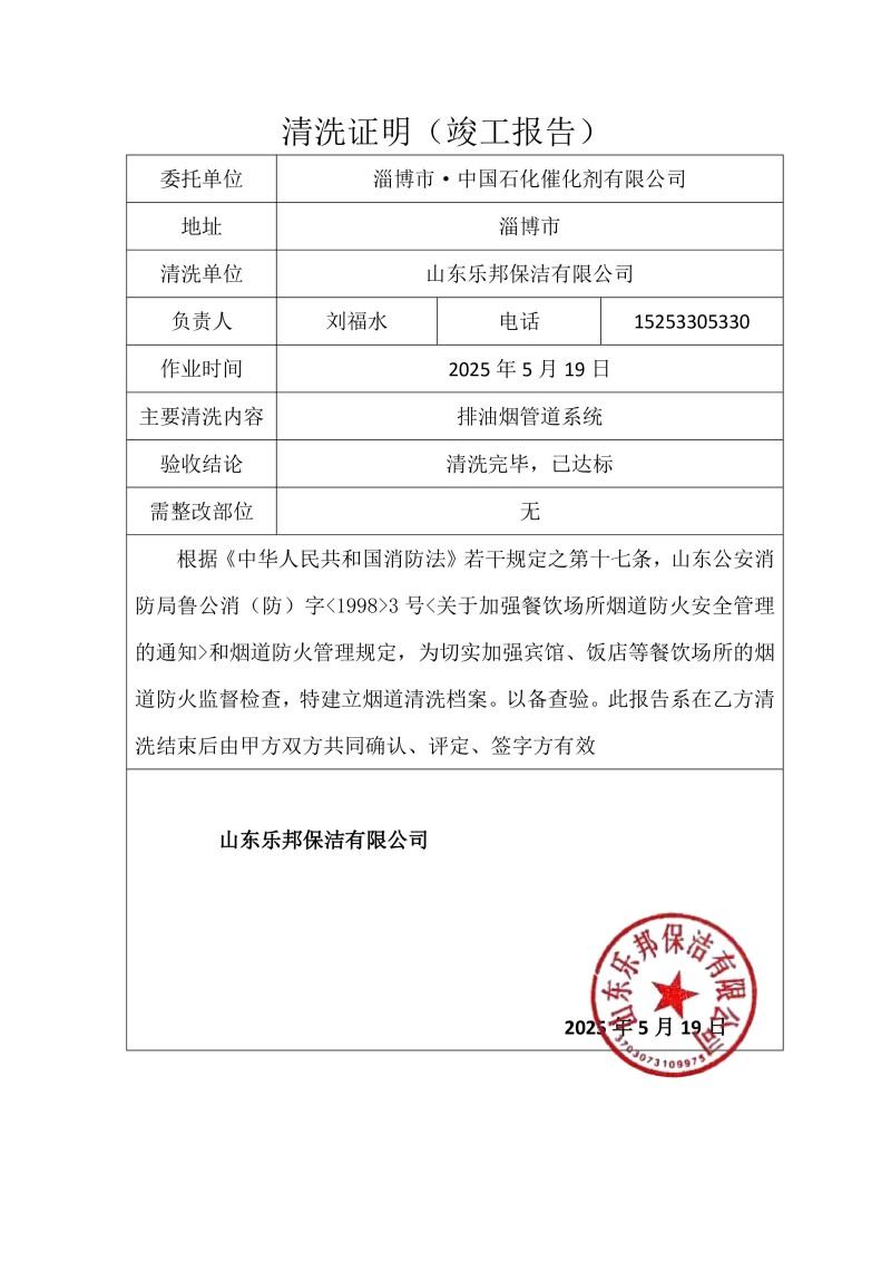 淄博市·中國石化催化劑有限公司清洗報告25.5.19