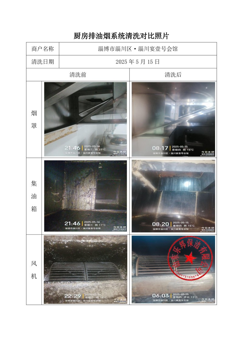 淄博市淄川區(qū)·淄川宴壹號會館清洗報告25.5.15